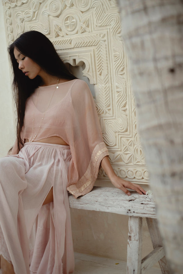 Designed for versatility, the Yuna Shirt can be styled as a crop shirt over dresses or worn as a standalone piece. The adjustable waist buttons allow for a customizable fit—wear it fitted or leave it loose for a more effortless look. The loose, airy sleeves enhance movement and add a touch of effortless grace.